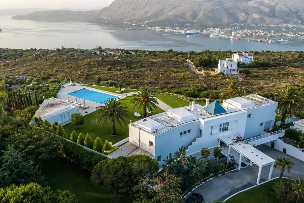Σκαρφαλωμένη σε ένα ιδιωτικό κτήμα, η βίλα Casa Scordilli, προσφέρει στο ζευγάρι και τους φιλοξενούμενους την απαιτούμενη ιδιωτικότητα αλλά και χλιδή, μπροστά σε μια απέραντη θέα σε ολόκληρο τον κόλπο της Σούδας.