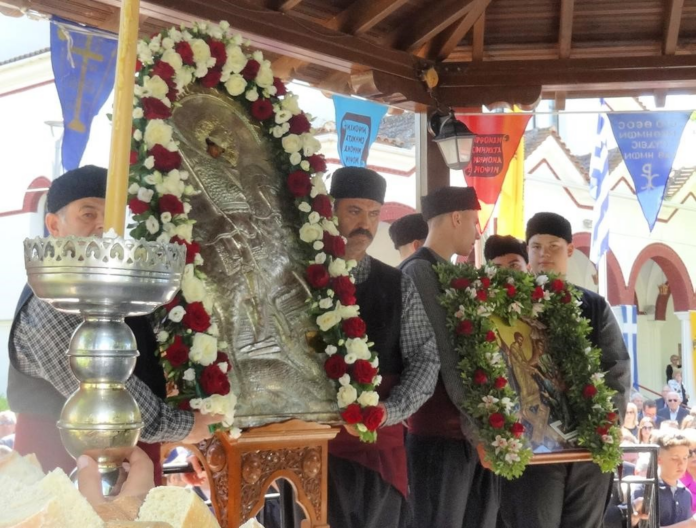 Ακολούθησαν οι πολιτιστικές εκδηλώσεις με την εμφάνιση των χορευτικών συγκροτημάτων του ΜΛΣ «Θεόκλητος Φαρμακίδης» στον προαύλιο χώρο του Ιερού Ναού δίνοντας ζωντάνια και πνοή στο χωριό τονίζοντας με ιδιαίτερο σεβασμό και λαμπρότητα την ημέρα του εορτασμού του Πολιούχου Αγίου Γεωργίου.