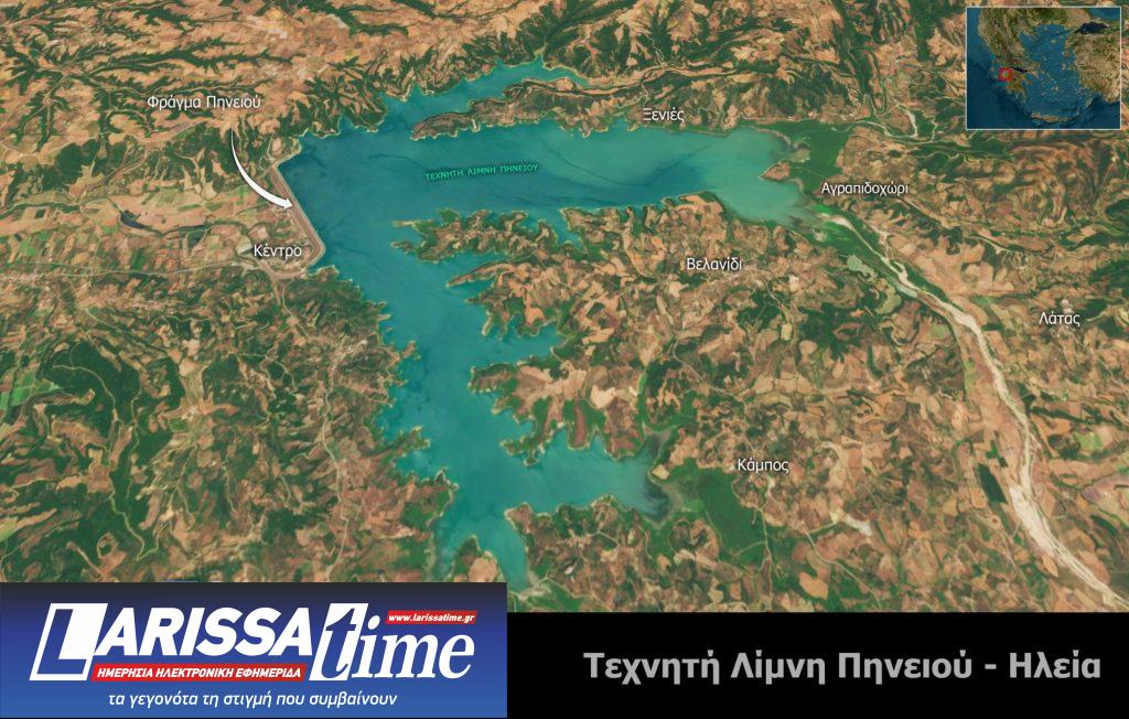 Από ότι φαίνειται μειωμένη είναι η έκταση της τεχνητής λίμνης του Πηνειού στην Ηλεία, λόγω της απουσίας βροχών, των υψηλών θερμοκρασιών και του πολύ ήπιου χειμώνα. Αν υπολογίσει κανείς τα δορυφορικά δεδομένα που επεξεργάστηκε το climatebook, από τον δορυφόρο Sentinel-2, στις 22 Ιουλίου 2023 η συνολική έκταση της επιφάνειας της λίμνης ήταν ~16,6 km², ενώ στις 21 Ιουλίου 2024 υπολογίστηκε στα ~9,8 km².
