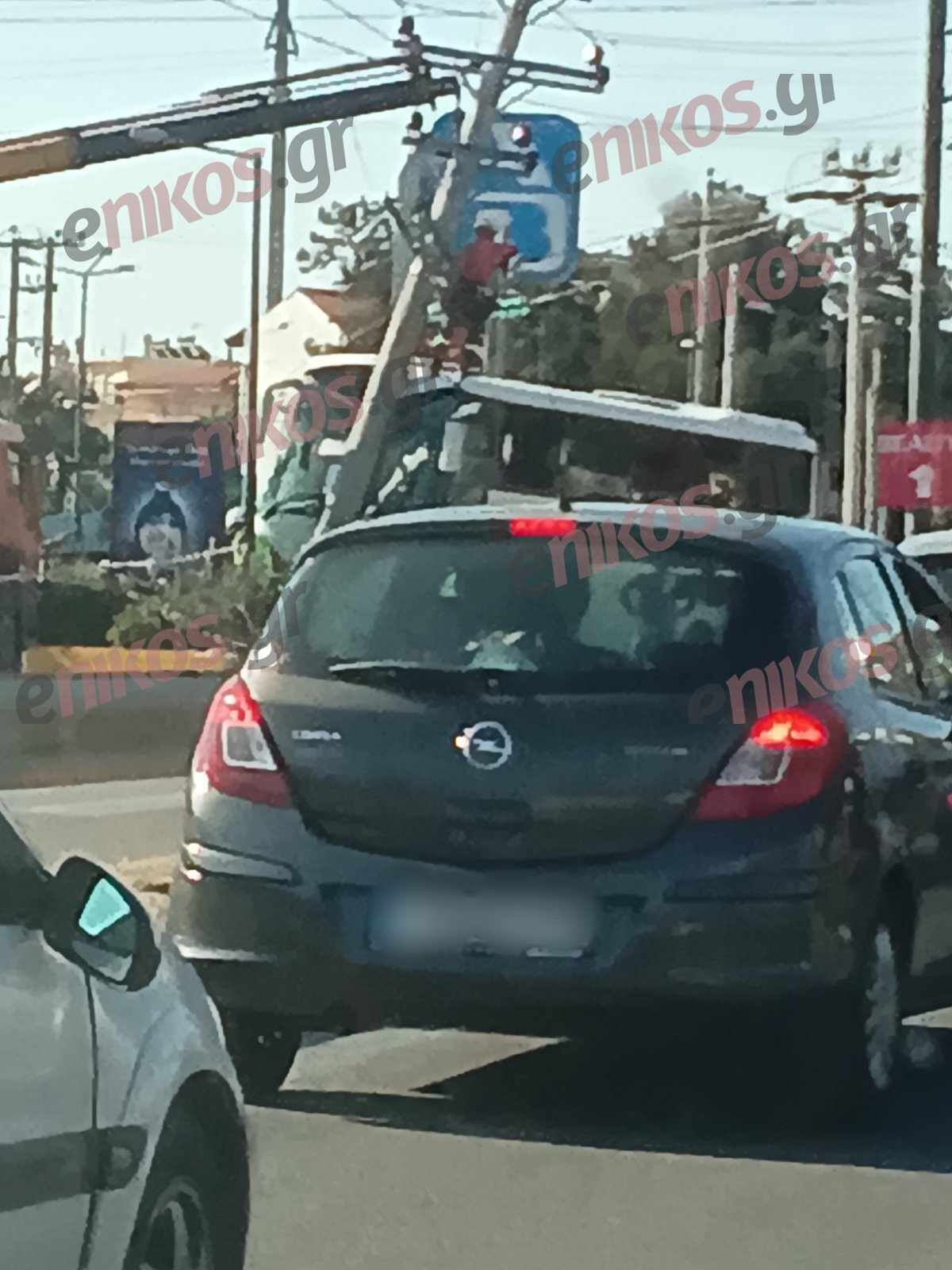 Τροχαίο ατύχημα σημειώθηκε το πρωί της Δευτέρας (13/05), στην Λεωφόρο Λαυρίου, στο ύψος των Γλυκών Νερών, όπου ένα τουριστικό λεωφορείο έπεσε πάνω σε τσιμεντένια κολώνα ηλεκτροδότησης, αφού πρώτα χτύπησε την πινακίδα της στάσης των αστικών συγκοινωνιών, που βρίσκεται στο σημείο.