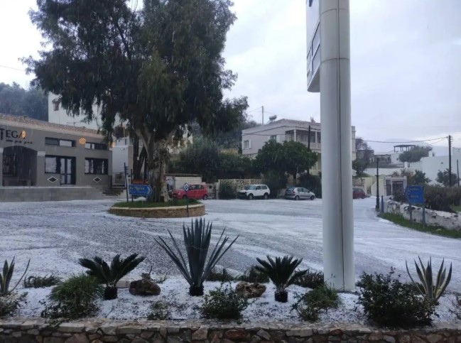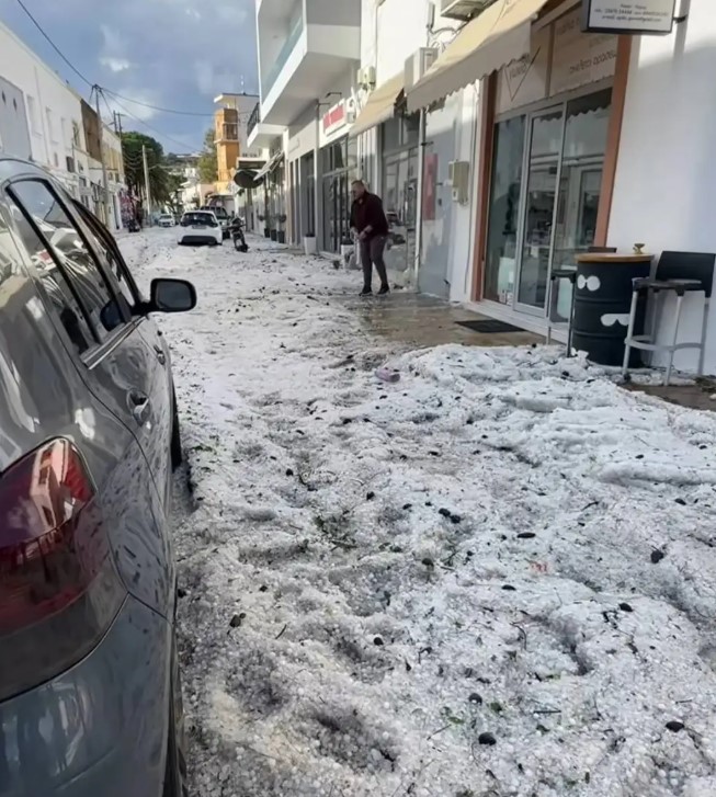 Μέσα σε λίγα λεπτά, δρόμοι και σπίτια στη Λέρο καλύφθηκαν από στρώμα χαλαζιού, με αποτέλεσμα η κυκλοφορία των αυτοκινήτων να δυσκολέψει σε αρκετά σημεία. Το φαινόμενο παραξένεψε κατοίκους και οδηγούς, αφού έχει να εμφανιστεί πολλά χρόνια.