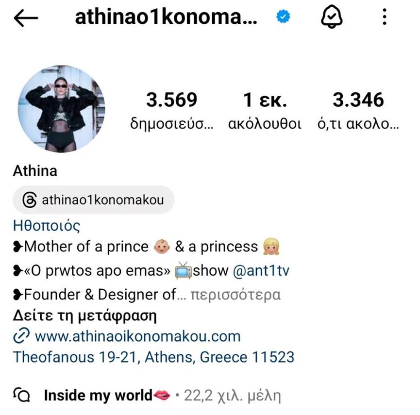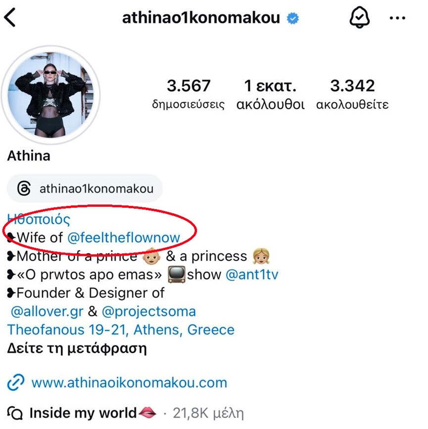 Μάλιστα λίγες ώρες μετά την ανακοίνωση του χωρισμού, η Αθηνά Οικονομάκου έκανε μια αλλαγή στο προφίλ της στο Instagram.