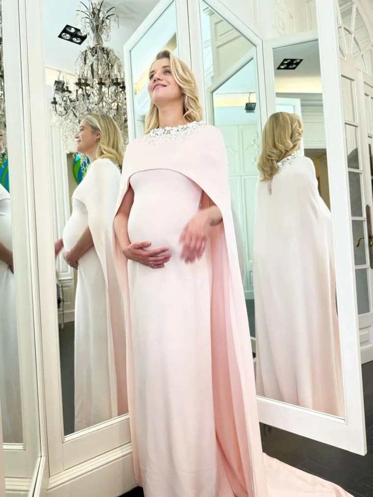 Η Τζένη Θεωνά, η οποία διανύει τον πέμπτο μήνα της εγκυμοσύνης της, επέλεξε μια ξεχωριστή δημιουργία του ιστορικού Οίκου Celia Kritharioti. Πρόκειται για ένα απαλό ροζ φόρεμα σε συνδυασμό με μια εντυπωσιακή, χειροποίητη κεντημένη κάπα, διακοσμημένη με λουλούδια και λαμπερά κρύσταλλα. Ένα look που απέπνεε ρομαντισμό, κομψότητα και συμβολισμό, αναδεικνύοντας τη σύγχρονη γυναικεία θηλυκότητα μέσα από την τέχνη της υψηλής ραπτικής.