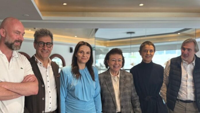 Στο γεύμα εργασίας, που παρέθεσε ο πρόεδρος του Διοικητικού Συμβουλίου του Φεστιβάλ Κινηματογράφου Θεσσαλονίκης Άκης Σακελλαρίου, είχε την ευκαιρία η υπουργός Πολιτισμού Λίνα Μενδώνη να συζητήσει με την Ζιλιέτ Μπινός, Πρόεδρο της Ευρωπαϊκής Ακαδημίας Κινηματογράφου– EFA για θέματα κοινού ενδιαφέροντος. Συζητήθηκαν οι δυνατότητες που προσφέρουν το υπερσύγχρονο Ηχογραφικό Κέντρο και το Κέντρο Επαυξημένης Πραγματικότητας -οι νέες υποδομές που εγκαινιάστηκαν πριν λίγες μέρες στο Μέγαρο Μουσικής Θεσσαλονίκης- τα οποία μπορούν να προσελκύσουν ποικίλες παραγωγές και να αξιοποιηθούν ιδιαίτερα για οπτικοακουστικές/ κινηματογραφικές παραγωγές.