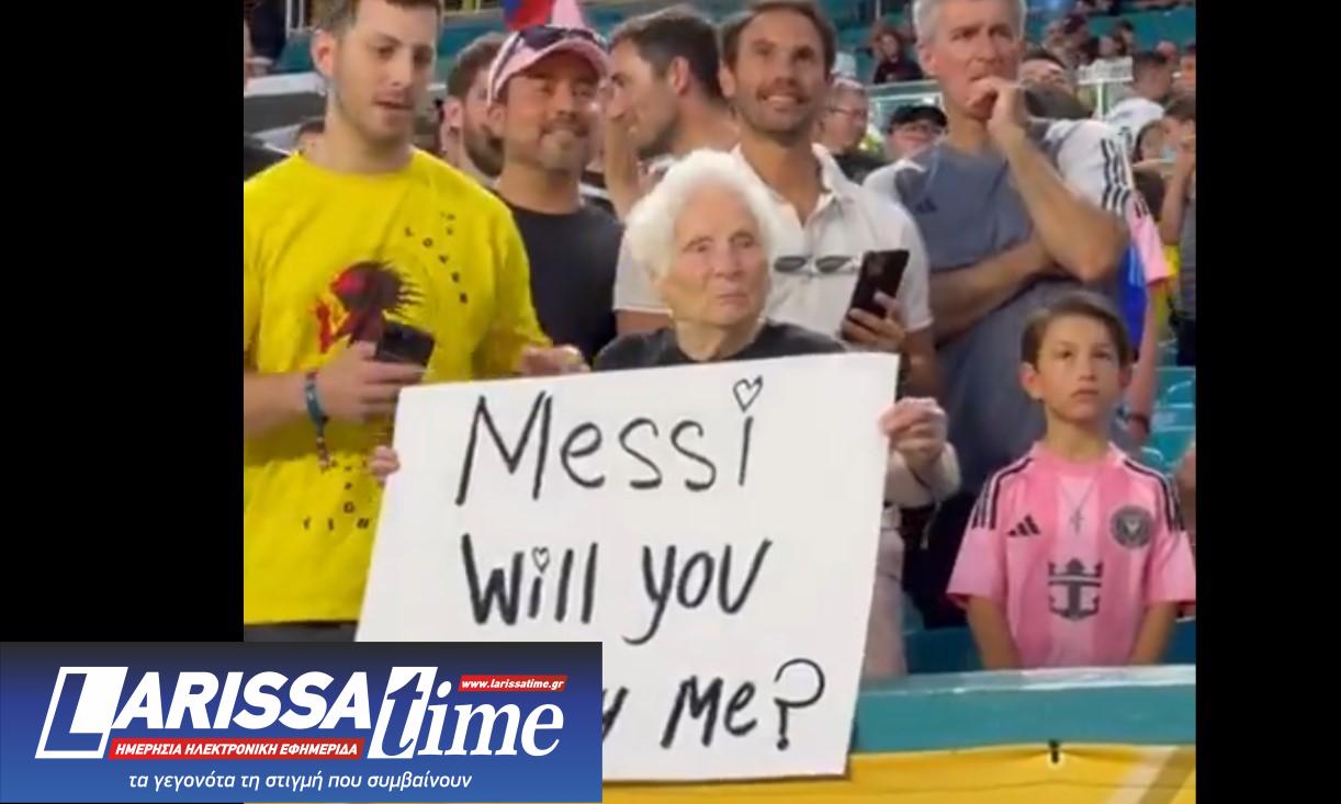 Η συγκεκριμένη κυρία που φαίνεται έχει κάτι παραπάνω από τα διπλά χρόνια του Λιονέλ Μέσι, κρατούσε ένα πλακάτ που έγραφε: «Μέσι, θα με παντρευτείς;».