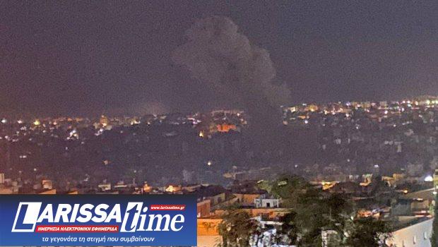 Επειτα από αλλεπάλληλα πλήγματα, το οπτικό υλικό που μεταδόθηκε εικόνιζε στήλες μαύρου καπνού να υψώνονται από διάφορους τομείς των νοτίων προαστίων. Ακούστηκε σειρά εκρήξεων.