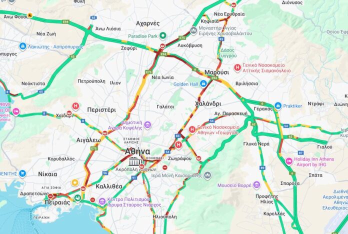 Παράλληλά, προβλήματα καταγράφονται στη λεωφόρο Αλεξάνδρας, τη Μεσογείων, την κάθοδο της Βασιλίσσης Σοφίας, τη Σταδίου και τη Βουλιαγμένης.