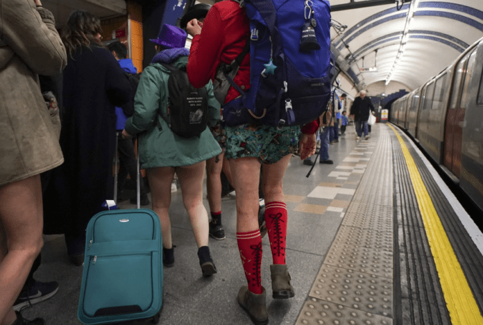 Αφού συναντηθούν στην είσοδο του Chinatown, δεκάδες «αναρχικοί» των ρούχων περάσαν μέσα από τους δρόμους μέχρι τη στάση Picadilly Circus στο κεντρικό Λονδίνο που επιβιβάστηκαν στο πρώτο τους συρμό. Το μόνο πρόβλημα ήταν ότι τα βαγόνια ήταν τόσο γεμάτα που δεν μπορούσαν να βγάλουν τα παντελόνια τους.