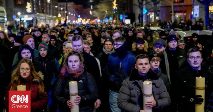 Στην Πλατεία της Παλιάς Αγοράς, όπου βρίσκεται η υπαίθρια χριστουγεννιάτικη αγορά που έγινε την περασμένη Παρασκευή στόχος του 50χρονου Σαουδάραβα Ταλέμπ Α., συγκεντρώθηκαν νωρίτερα απόψε περισσότεροι από 4000 άνθρωποι, ένωσαν τα χέρια τους σιωπηλά και με αναμμένα κεριά εξέφρασαν αφενός τη θλίψη τους για τα θύματα της επίθεσης και αφετέρου την αντίθεσή τους στις ρητορικές και τις πρακτικές μίσους. «Θέλουμε να πενθήσουμε – Καμία ευκαιρία στο μίσος», ήταν το κεντρικό σύνθημα και καθ’ όλη τη διάρκεια της εκδήλωσης επικρατούσε απόλυτη ησυχία.