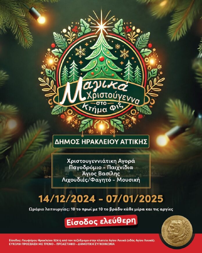 «Για πρώτη φορά στην πόλη μας στήνουμε ένα τόσο μεγάλο Χριστουγεννιάτικο Χωριό για να μοιράσουμε χαρά και χαμόγελα στους μικρούς μας φίλους αλλά και σε όλους μας τους δημότες. Άλλωστε, τα Χριστούγεννα είναι η περίοδος που θέλουμε όλοι να νιώσουμε ξανά παιδιά, να ξεχάσουμε έγνοιες και στεναχώριες και να γιορτάσουμε μαζί. Καλές γιορτές σε όλες και όλους. Σας περιμένω στο Κτήμα Φιξ, στην καρδιά των Μαγικών Χριστουγέννων του Δήμου μας…», το μήνυμα του δημάρχου Ηρακλείου Αττικής, Νίκου Μπάμπαλου.