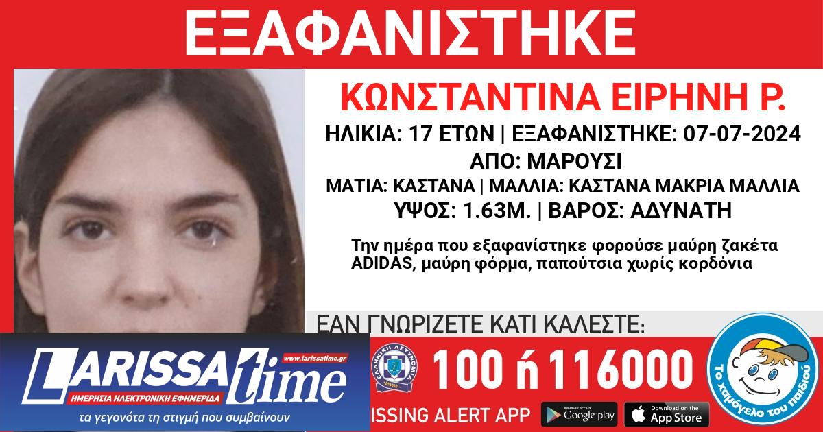 Την κινητοποίηση των Αρχών έχει προκαλέσει η εξαφάνιση της 17χρονης Κωνσταντίνας από το Μαρούσι.