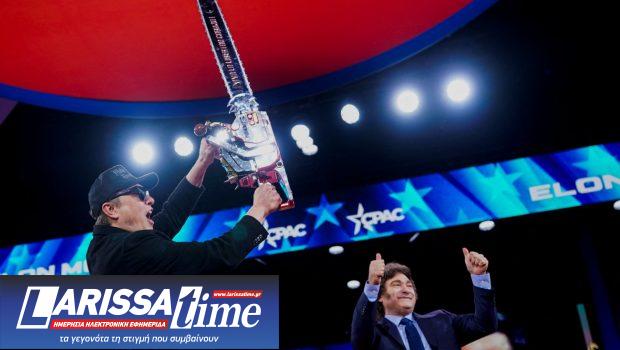 Ο Έλον Μασκ, ο πιο πλούσιος άνθρωπος του κόσμου που έχει αναλάβει να τσεκουρώσει τις δημόσιες δαπάνες της ομοσπονδιακής κυβέρνησης των ΗΠΑ, εμφανίστηκε στη σκηνή μίας συγκέντρωσης συντηρητικών έξω από την Ουάσιγκτον κραδαίνοντας… αλυσοπρίονο.