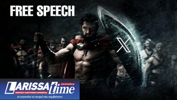 Με μεγάλα γράμματα αναγράφεται επίσης ένα «Free Speech» για όποιον δεν κατάλαβε ότι ο Μασκ ως άλλος Λεωνίδας θα προτιμήσει να θυσιαστεί παρά να επιτρέψει να μπουν όρια στα κηρύγματα μίσους που δημοσιεύονται στο Χ.