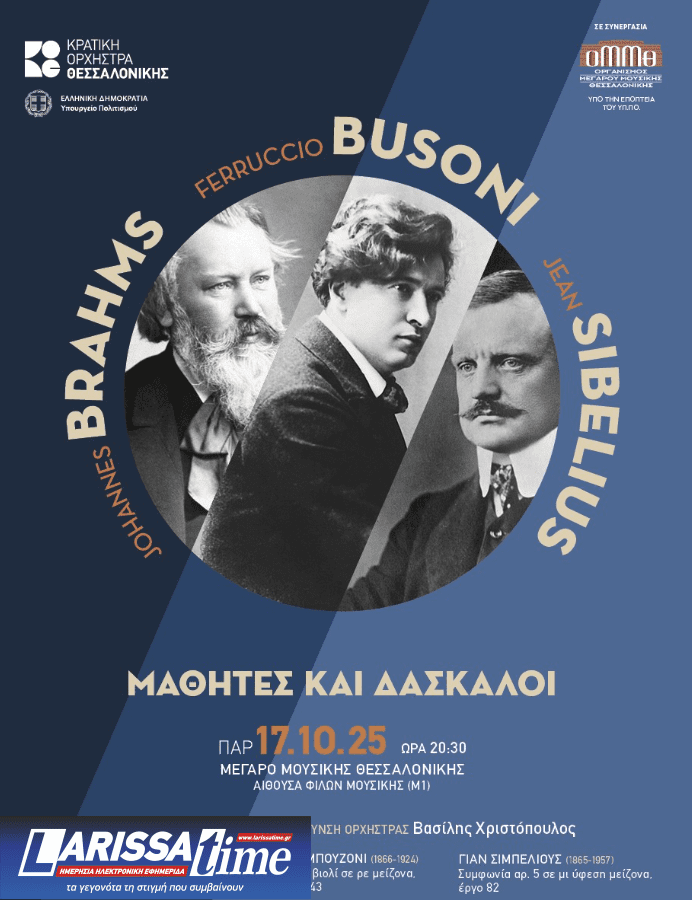 Η Κρατική Ορχήστρα Θεσσαλονίκης συνεχίζει τον επιτυχημένο κύκλο συναυλιών της “Μαθητές και δάσκαλοι” με έργα των Μπραμς, Μπουζόνι και Σιμπέλιους, με σολίστ τον Διευθυντή της και διεθνώς αναγνωρισμένο βιολιστή Σίμο Παπάνα και μαέστρο τον σπουδαίο Έλληνα αρχιμουσικό Βασίλη Χριστόπουλο.