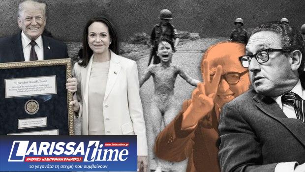 Στην προσπάθειά της η Μαρία Κορίνα Ματσάδο να αναλάβει την ηγεσία της Βενεζουέλας πήγε στον Λευκό Οίκο και προσέφερε στον πρόεδρο των ΗΠΑ το Νόμπελ Ειρήνης, που της απονεμήθηκε τον Δεκέμβριο. Δεν είναι όμως η πρώτη φορά που πιάνουν στα χέρια τους το βραβείο Νόμπελ άτομα που εξαπολύουν πολέμους ή στηρίζουν βίαιες ανατροπές κυβερνήσεων.