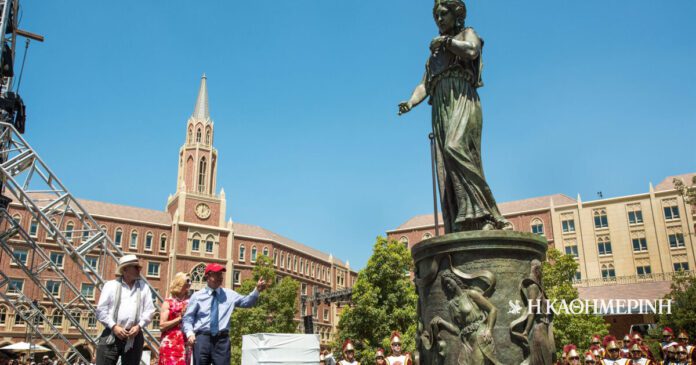 Με δική του πρωτοβουλία, όταν ήταν πρόεδρος, προστέθηκε και ένα δεύτερο άγαλμα –αυτή τη φορά γυναικείο– στο κέντρο του USC Village. «Ανεγείραμε την Εκάβη, τη βασίλισσα της Τροίας, για να υπάρξει ισορροπία, να υπάρχει και η θηλυκή παρουσία», λέει. Και θυμάται πόσο προσωπικό υπήρξε για τον ίδιο αυτό το εγχείρημα: «Κατά τη διάρκεια των εργασιών, βρέθηκα με τη σύζυγό μου στο Μουσείο της Ακρόπολης. Φωτογράφισα τις Καρυάτιδες και έστειλα την εικόνα στον γλύπτη με σαφή οδηγία ότι θέλω τα μαλλιά της Εκάβης ακριβώς έτσι».
