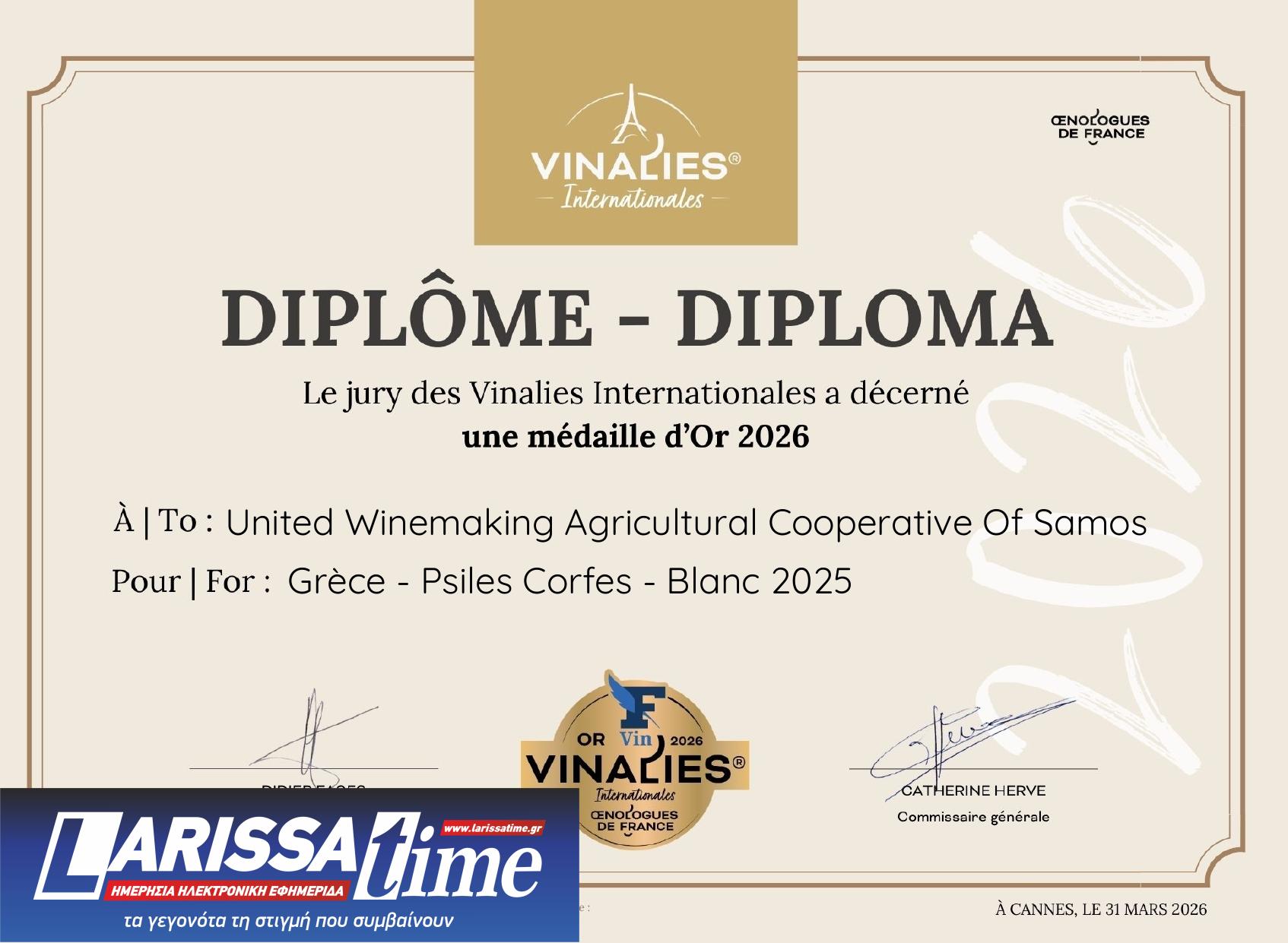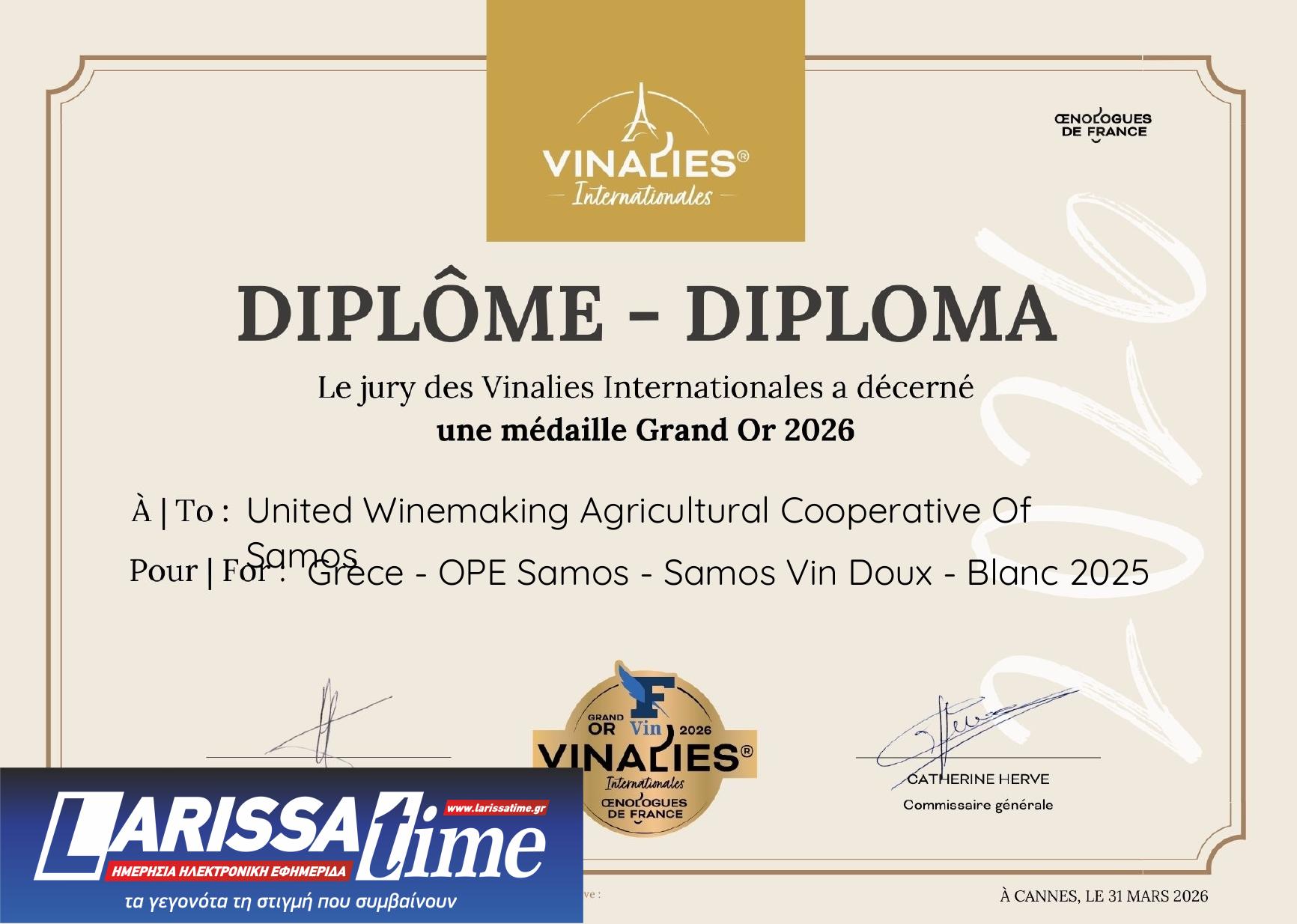 Samos Vin Doux 2025 – ΜΕΓΑΛΟ ΧΡΥΣΟ (Grand Or): Ο «βασιλιάς» των γλυκών κρασιών κατέκτησε την ανώτατη δυνατή διάκριση. Με το λαμπερό του χρυσαφένιο χρώμα και τα μελωμένα αρώματα βερίκοκου, μαρμελάδας και καραμέλας, απέδειξε γιατί θεωρείται σε όλον τον κόσμο ένα διαχρονικό οινικό αριστούργημα.