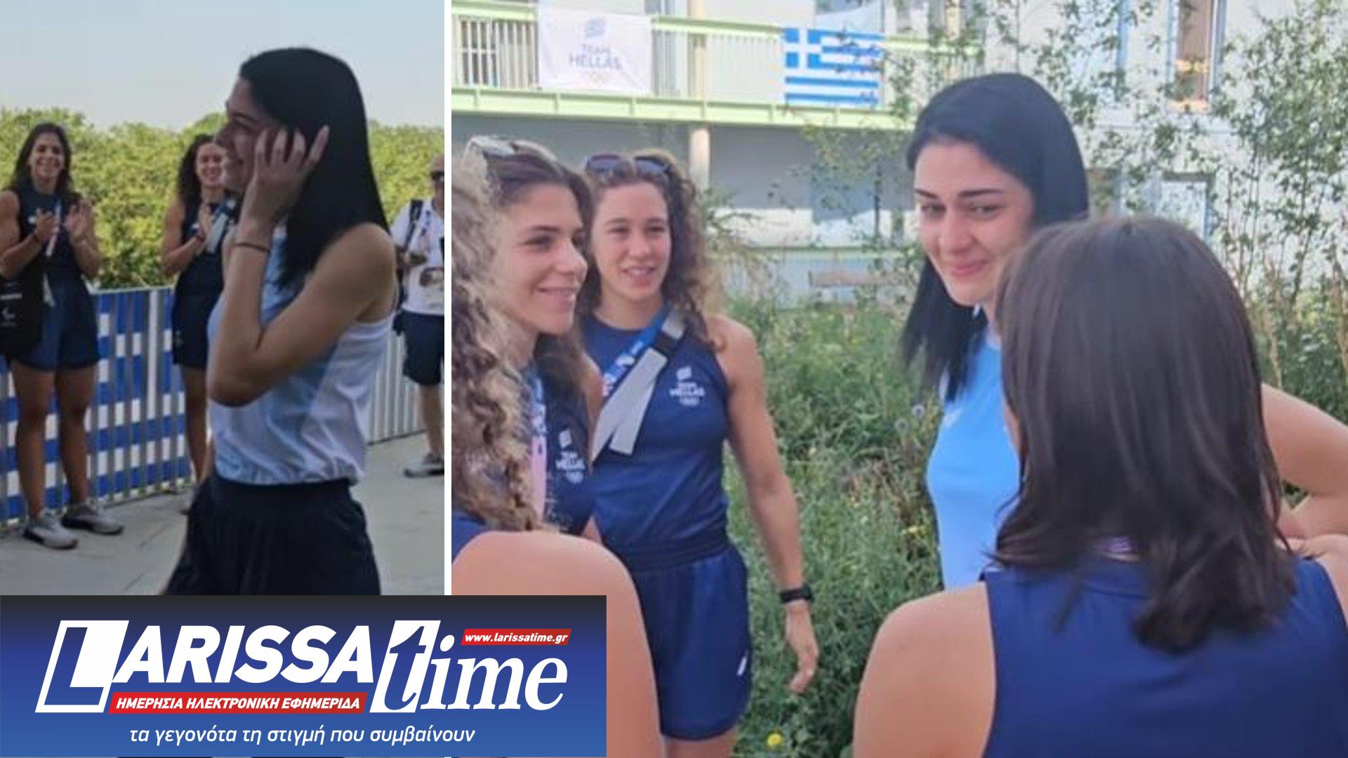 Η Ελληνίδα πρωταθλήτρια της ξιφασκίας αποθεώθηκε από τα μέλη της ελληνικής αποστολής στο Ολυμπιακό Χωριό κατά την αποχώρησή της, και συγκινήθηκε.