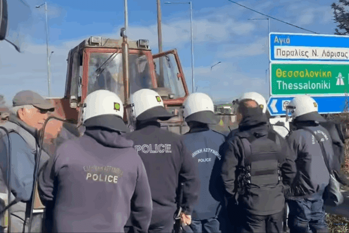 Σύμφωνα με τις πρώτες πληροφορίες, το επεισόδιο πυροδοτήθηκε όταν οι αστυνομικές δυνάμεις έκλεισαν το πέρασμα προς την εθνική οδό με περιπολικό, εμποδίζοντας τα τρακτέρ να κινηθούν προς το κεντρικό οδικό δίκτυο.