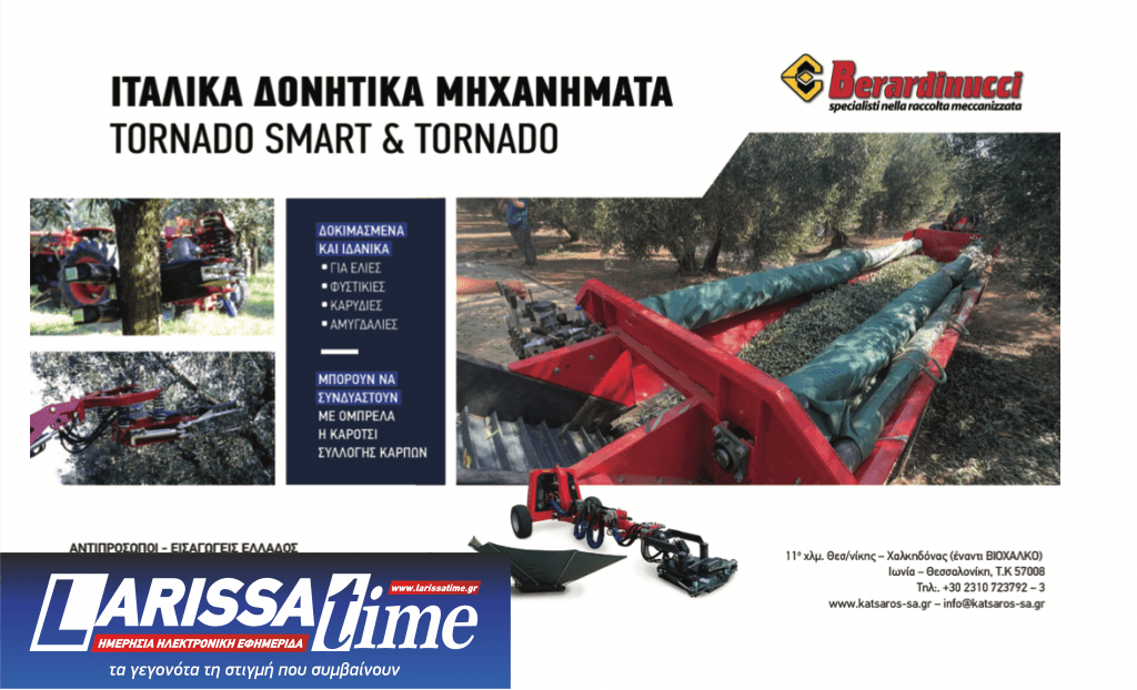 Τα µοντέλα TORNADO SMART και TORNADO είναι τα δονητικά µηχανήµατα του Ιταλικού εργοστασίου BERARDINUCCI, µε καινοτόµα χαρακτηριστικά, σχεδιασµένα ειδικά για τη συγκοµιδή ελιάς και για άλλες καλλιέργειες, όπως φιστικιές, καρυδιές, αµυγδαλιές. Είναι κατάλληλα για οποιοδήποτε είδος δέντρων (νεαρά, ενήλικα ή γηγενή), σε οποιαδήποτε κατάσταση εδάφους (επίπεδη, λοφώδη ή απότοµη) και σε οποιοδήποτε είδος φυτού (εντατικό, παραδοσιακό, κ.λπ.). Η σύνδεση µε το τρακτέρ πραγµατοποιείται µε απλό και γρήγορο τρόπο, µέσω της σύνδεσης.