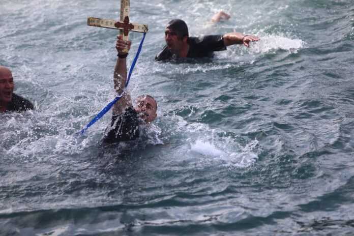 14 βατραχάνθρωποι βούτηξαν στα κρύα νερά για να πιάσουν τον Σταυρό