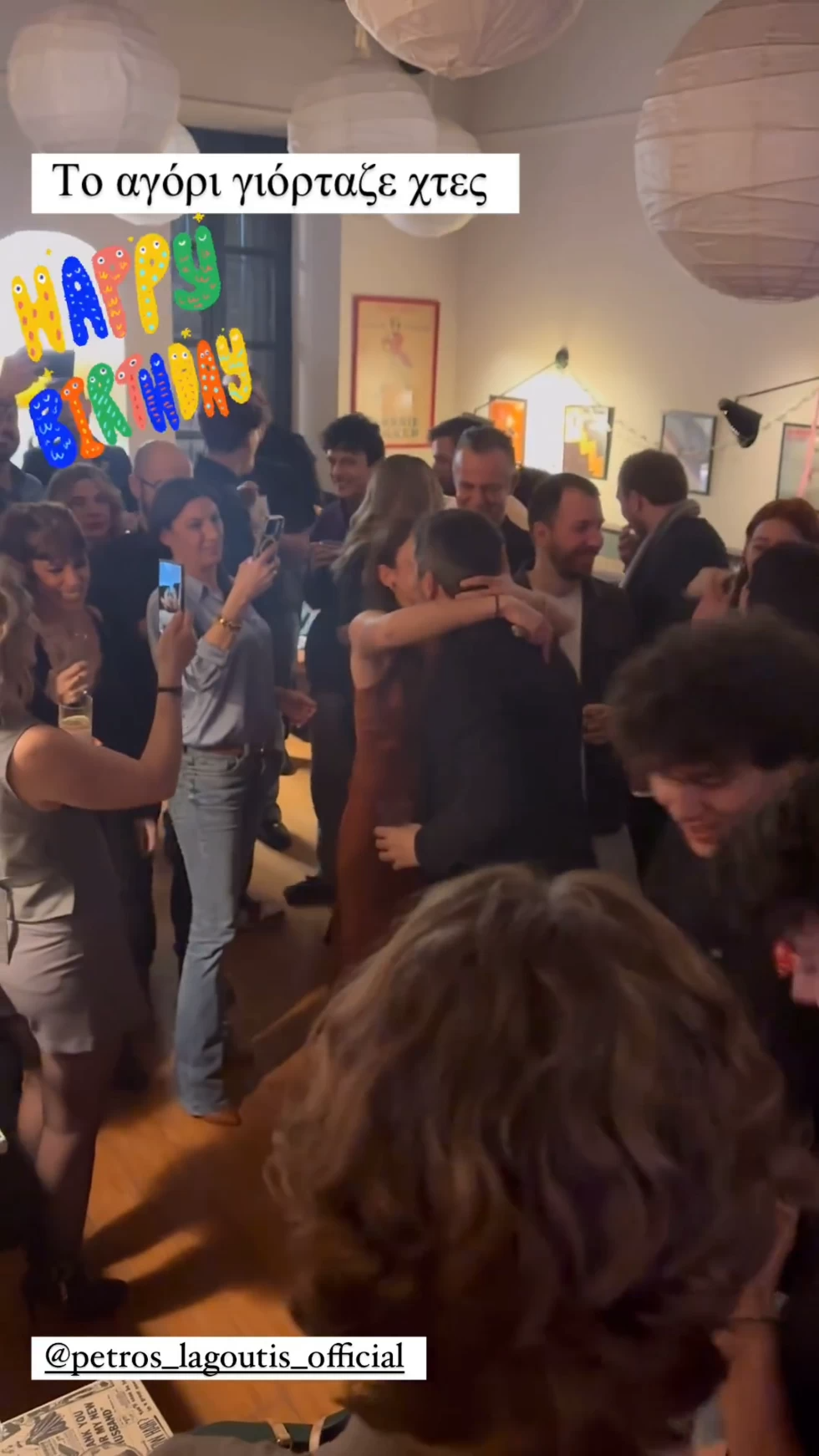 Μάλιστα, ο ηθοποιός ανέβασε μια σειρά από βίντεο στο Instagram από τη γιορτή που του ετοίμασε ο θίασος της παράστασης «Τέλειοι ξένοι», στην οποία πρωταγωνιστεί μαζί με την πρώην σύζυγό του, Μυρτώ Αλικάκη.