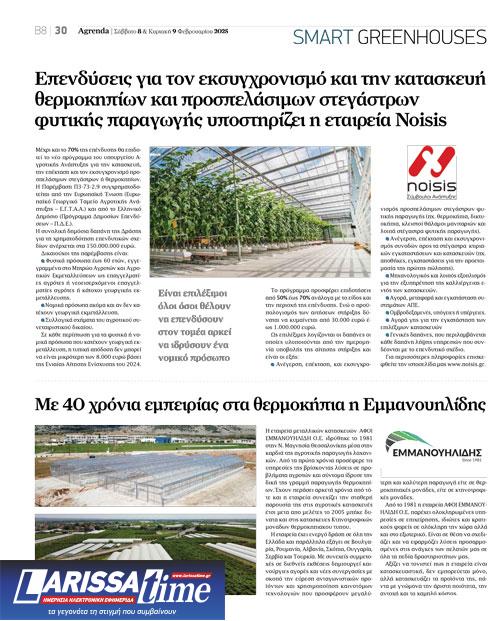 Επενδύσεις για τον εκσυγχρονισμό και την κατασκευή θερμοκηπίων και προσπελάσιμων στεγάστρων φυτικής παραγωγής υποστηρίζει η εταιρεία Noisis