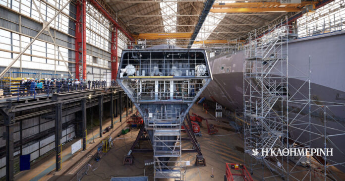 Να τονίσω, τέλος, και τη συμμετοχή της ελληνικής αμυντικής βιομηχανίας, συγκεκριμένα των Ναυπηγείων Σαλαμίνας, τα οποία κατασκευάζουν ένα από τα εννέα μπλοκ τα οποία ουσιαστικά δημιουργούν αυτό το υπερσύγχρονο πλοίο. Οταν οι φρεγάτες παραδοθούν, θα είναι τα πιο σύγχρονα πλοία τα οποία θα πλέουν στη Μεσόγειο, άξιοι διάδοχοι όλων των ιστορικών πλοίων του Πολεμικού Ναυτικού, πάνω στα οποία η ελληνική σημαία κυματίζει πάντα ψηλά και περήφανα», ανέφερε μεταξύ άλλων ο κ. Μητσοτάκης.