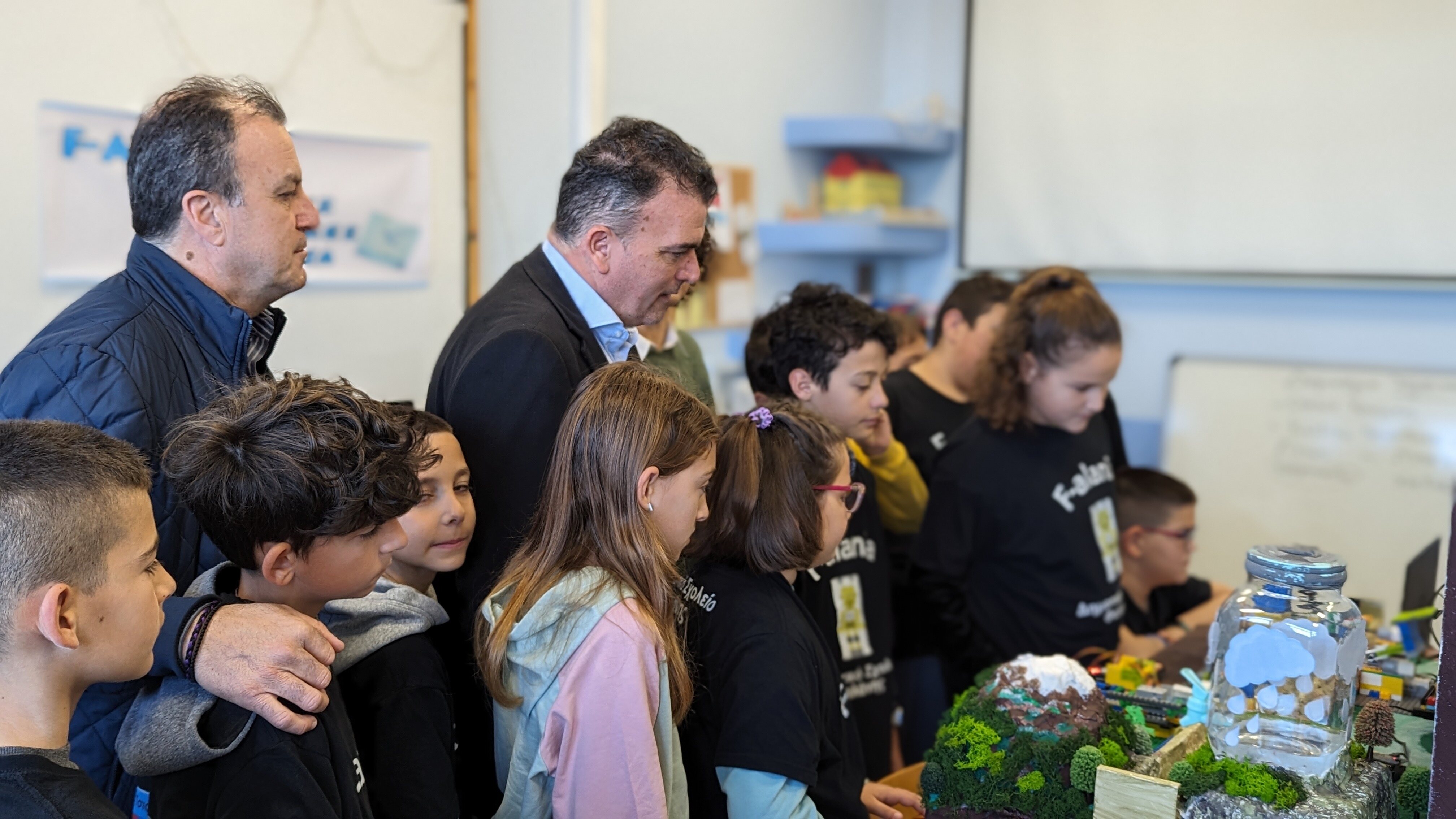 Στη συνάντηση μετείχαν ακόμη ο Αντιδήμαρχος Αγροτικής & Περιαστικής Ανάπτυξης, κ. Κωνσταντίνος Βλαχούλης, η καθηγήτρια Πληροφορικής, κ. Ξανθή Κόκκινου, η διευθύντρια του σχολείου, κ. Ευαγγελία Κανιά, καθώς και οι μαθήτριες και μαθητές της Ομάδας Ρομποτικής «F-Alania».