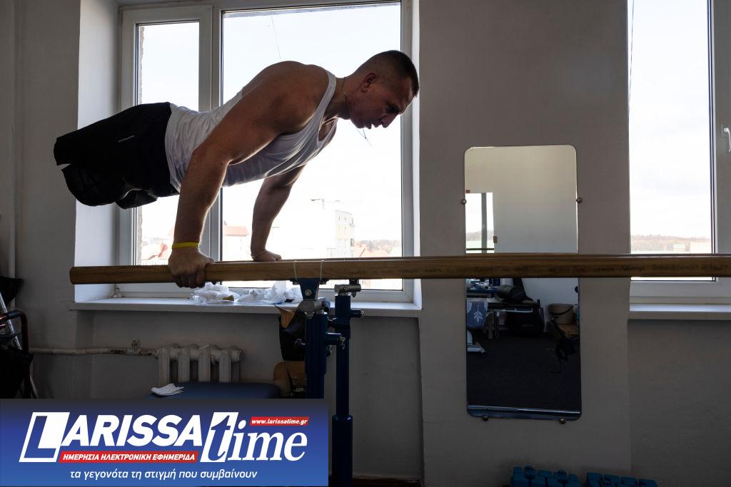 Ο Mykhailo Varvaric, διοικητής της 80ης Ταξιαρχίας Επίθεσης, έχασε και τα δυο του πόδια στις 29 Μαΐου, στο Λουχάνσκ, από νάρκη. Το νοσοκομείο της πόλης Τρούσκαβετς ειδικεύεται πλέον στη θεραπεία ακρωτηριασμένων στρατιωτών, λειτουργώντας ως μονάδα αποκατάστασης. Μέχρι τον Νοέμβριο του 2022, που η Paula Bronstein τράβηξε αυτή τη φωτογραφία, 173 στρατιώτες είχαν νοσηλευτεί στο νοσοκομείο, συμπεριλαμβανομένων 152 ακρωτηριασμένων.
