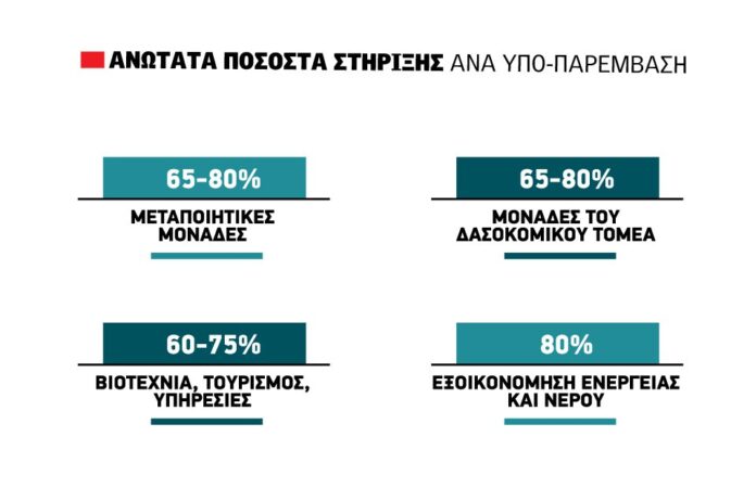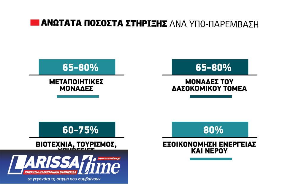 Η ένταση ενίσχυσης καθορίζεται σε ποσοστό έως 65% για το σύνολο της χώρας και έως 80% για τα µικρά νησιά Αιγαίου.
