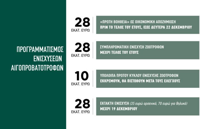 - Τα επιπλέον 28 εκατ. ευρώ ως συμπληρωματική ενίσχυση ζωοτροφών θα καταβληθούν μέχρι τέλος του έτους
