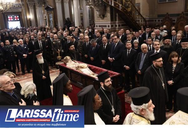 H πρόεδρος της Δημοκρατίας, ο Πρωθυπουργός και ο Πρόεδρος της Βουλής βρέθηκαν το πρωί στη Μητρόπολη Αθηνών για το ύστατο χαίρε στο Μακαριστό Αρχιεπίσκοπο.
