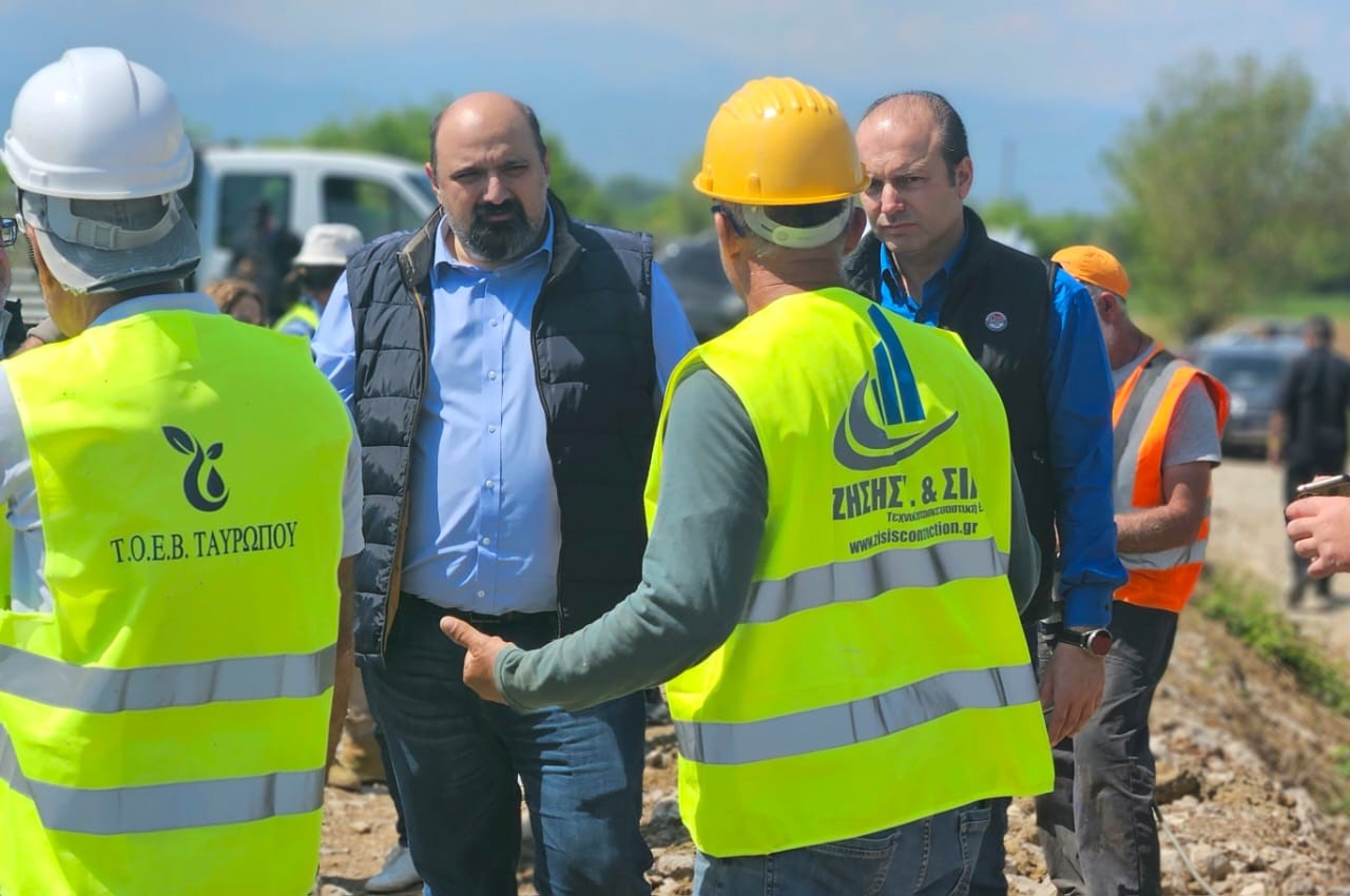 Στη συνέχεια, ο Υφυπουργός, κ. Χρήστος Τριαντόπουλος, επισκέφθηκε την έδρα του ΤΟΕΒ Ταυρωπού, με τον οποίο έχει αναπτυχθεί στενή συνεργασία όλη αυτή την περίοδο των αποκαταστάσεων μαζί και με τον Υπουργό Αγροτικής Ανάπτυξης και Τροφίμων, κ. Λευτέρη Αυγενάκη. Κατά τη διάρκεια της σύσκεψης στα γραφεία του ΤΟΕΒ Ταυρωπού, ο Πρόεδρος του ΤΟΕΒ, κ. Αθανάσιος Μαρκινός, ενημέρωσε τον Υφυπουργό για τις μεγάλες και σημαντικές ζημιές που υπέστη το δίκτυο και οι υποδομές άρδευσης, κάθε επιπέδου, στην περιοχή ευθύνης του ΤΟΕΒ, ενώ παρουσίασε τις ενέργειες και δράσεις που προχώρησε το τελευταίο διάστημα – σε ένα πλαίσιο στενής συνεργασίας – για την αποκατάσταση του αρδευτικού δικτύου μετά τις πλημμύρες του Σεπτεμβρίου του 2023. Προς αυτή την κατεύθυνση, σε ένα πλαίσιο συνεργασίας του Υπουργείου Εθνικής Οικονομίας και Οικονομικών, του Υπουργείου Αγροτικής Ανάπτυξης και Τροφίμων και του Υπουργείου Κλιματικής Κρίσης και Πολιτικής Προστασίας έχει εγκριθεί έκτακτη χρηματοδότηση προς τους ΤΟΕΒ και τους Δήμους με αρδευτικά δίκτυα συνολικού ύψους 15 εκατ. ευρώ. Μετά τη σύσκεψη, ο Υφυπουργός μαζί με τα στελέχη του ΤΟΕΒ επισκέφθηκαν σημεία στο πεδίο των εργασιών που βρίσκονται σε εξέλιξη, με στενά χρονοδιαγράμματα, ώστε να διασφαλιστεί η παραγωγική κανονικότητα στις αγροτικές εκμεταλλεύσεις της περιοχής.