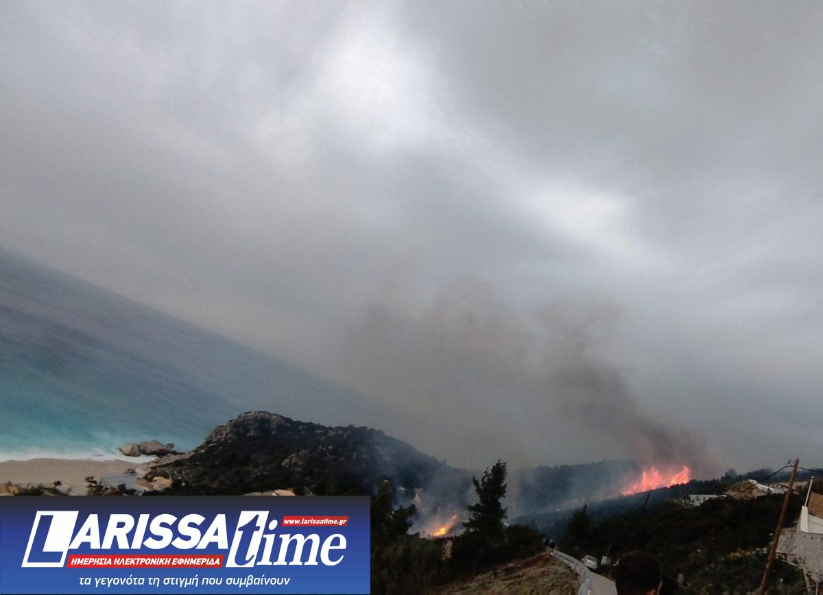 Συγκεκριμένα η πυρκαγιά εκδηλώθηκε στην περιοχή του Αγίου Νικήτα στον δρόμο που οδηγεί στη γνωστή παραλία Κάθισμα.