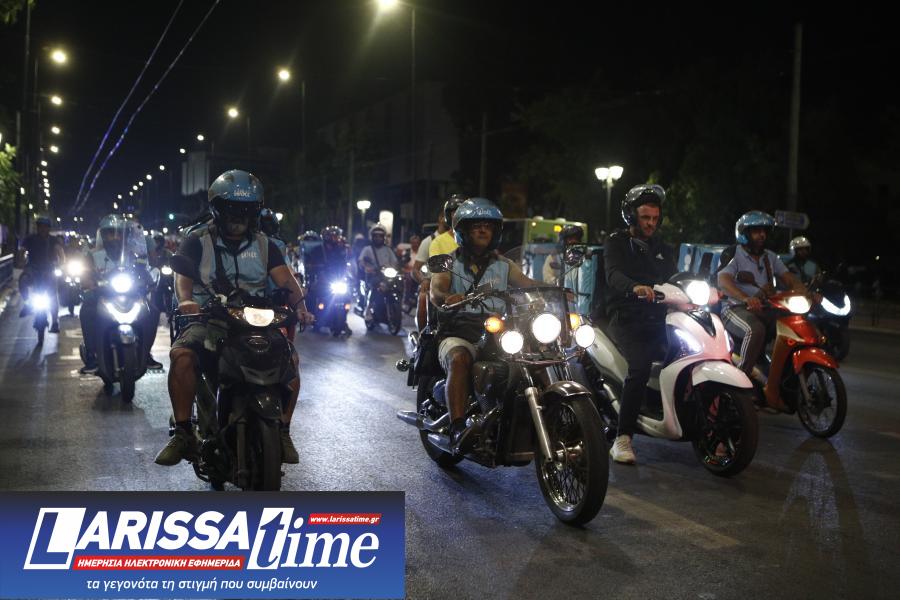 Στη συνέχεια πραγματοποίησαν μεγάλη μοτοπορεία στους δρόμους του κέντρου της Αθήνας.