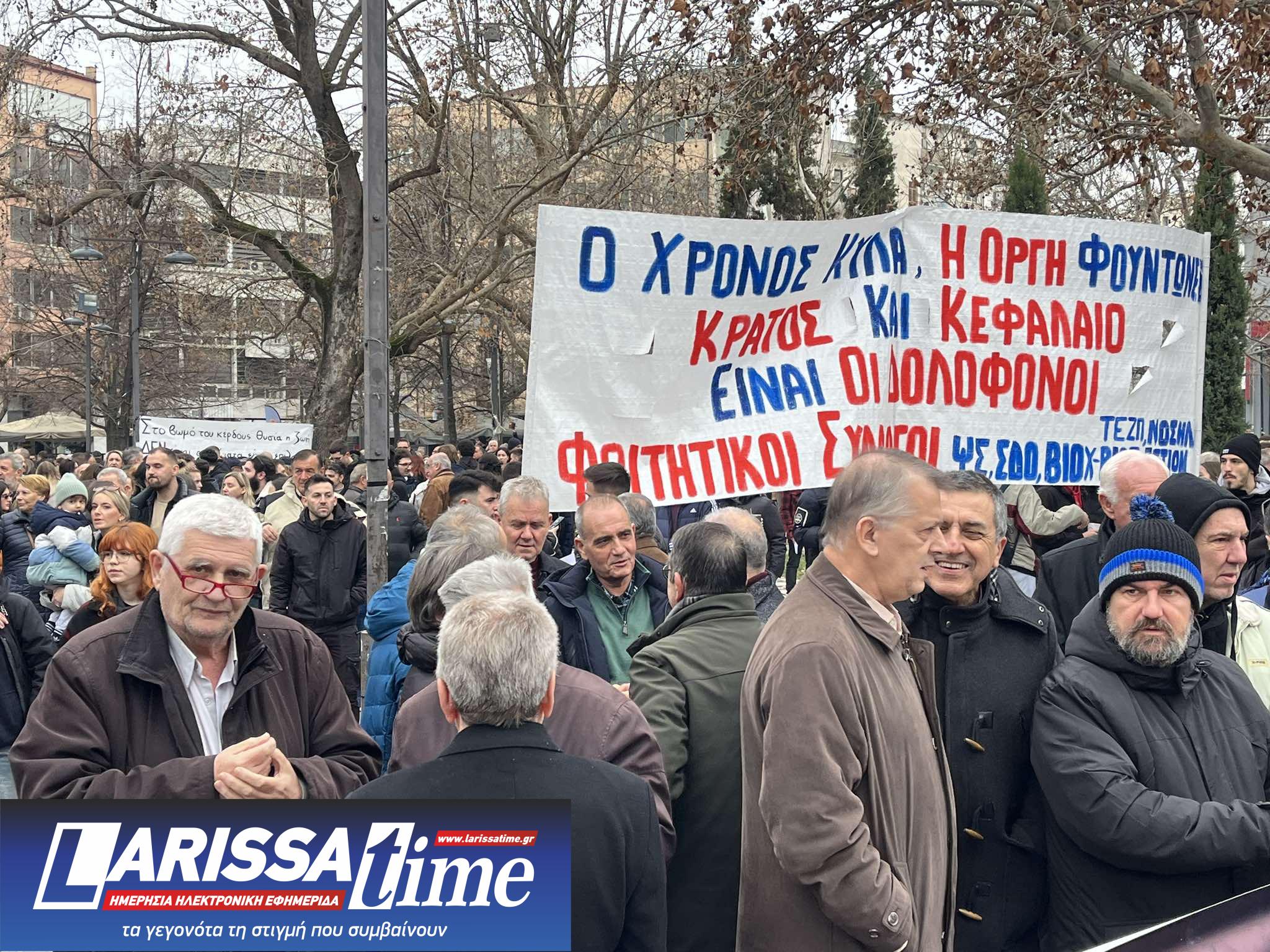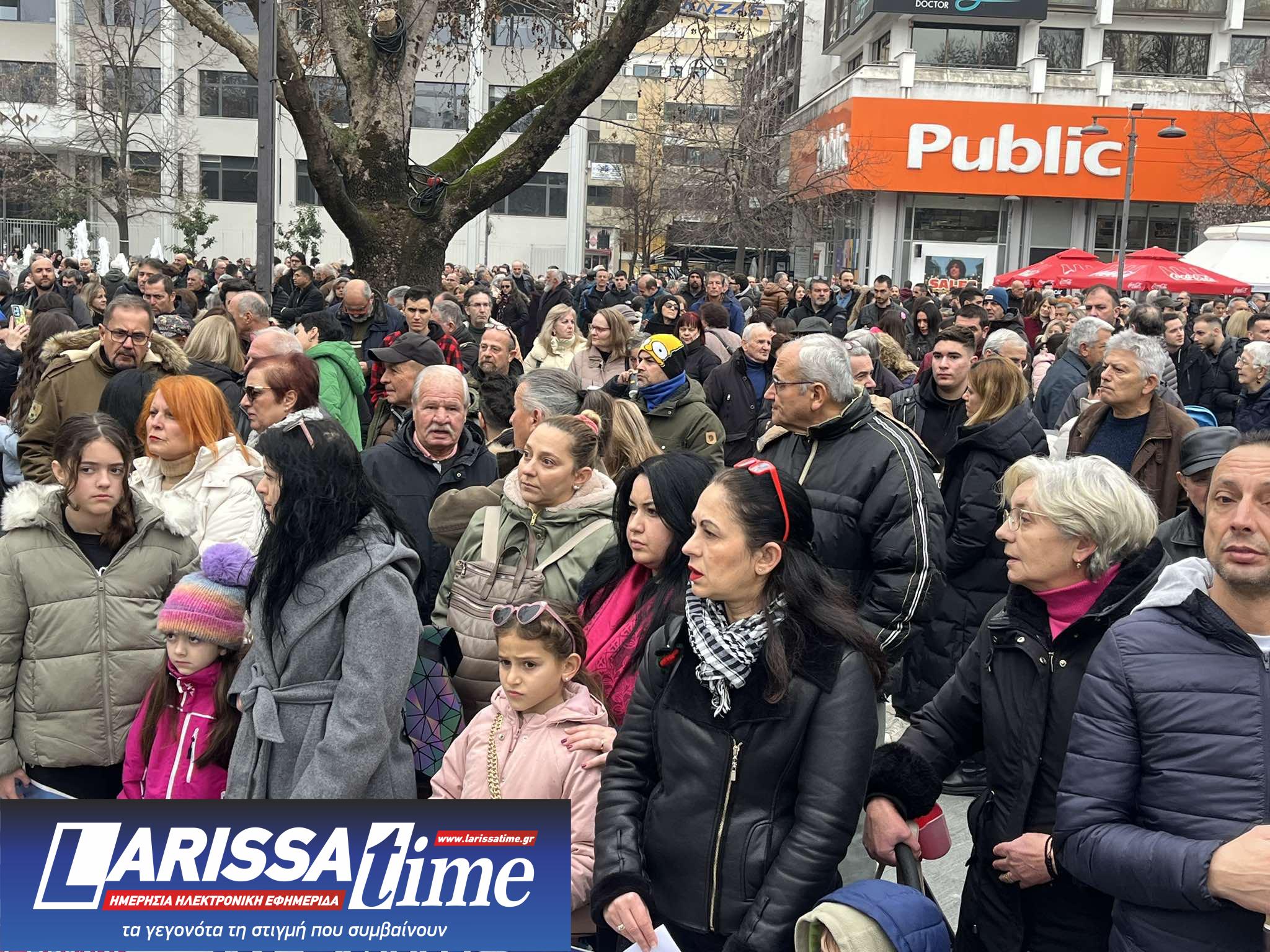 Χιλιάδες κόσμου βρέθηκαν σήμερα στις 12 το μεσημέρι στην κεντρική πλατεία Λάρισας όπου πραγματοποιήθηκε συγκέντρωση διαμαρτυρίας με τη συμμετοχή δεκάδων φορέων για την υπόθεση του φοβερού δυστυχήματος των Τεμπών. Το κάλεσμα απηύθυνε ο Σύλλογος Πληγέντων Δυστυχήματος Τεμπών.