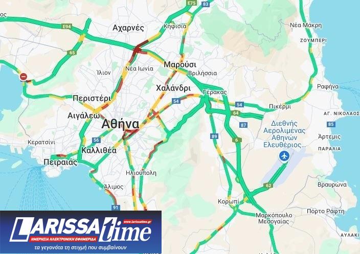 Στο «κόκκινο» βρίσκεται ο Κηφισός τόσο στην άνοδο όσο και στην κάθοδο από την Κηφισιά μέχρι και το Αιγάλεω, αλλά και η άνοδος της Αττική Οδού από το ύψος της Φιλαδέλφειας μέχρι και το Μαρούσι.