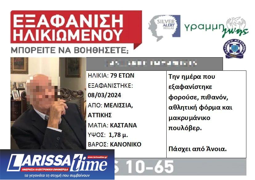 Για την εξαφάνιση του άνδρα είχε ενεργοποιηθεί το silver alert από το Χαμόγελο του Παιδιού την περασμένη Παρασκευή.