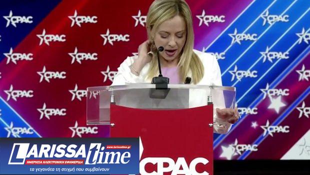 Η Τζόρτζια Μελόνι παρενέβη, μέσω τηλεδιάσκεψης, στο συνέδριο των Αμερικανών συντηρητικών (Conservative Political Action Conference – Cpac), που βρίσκεται σε εξέλιξη στην Ουάσινγκτον και στο οποίο θα απευθυνθεί και ο Ντόναλντ Τραμπ.