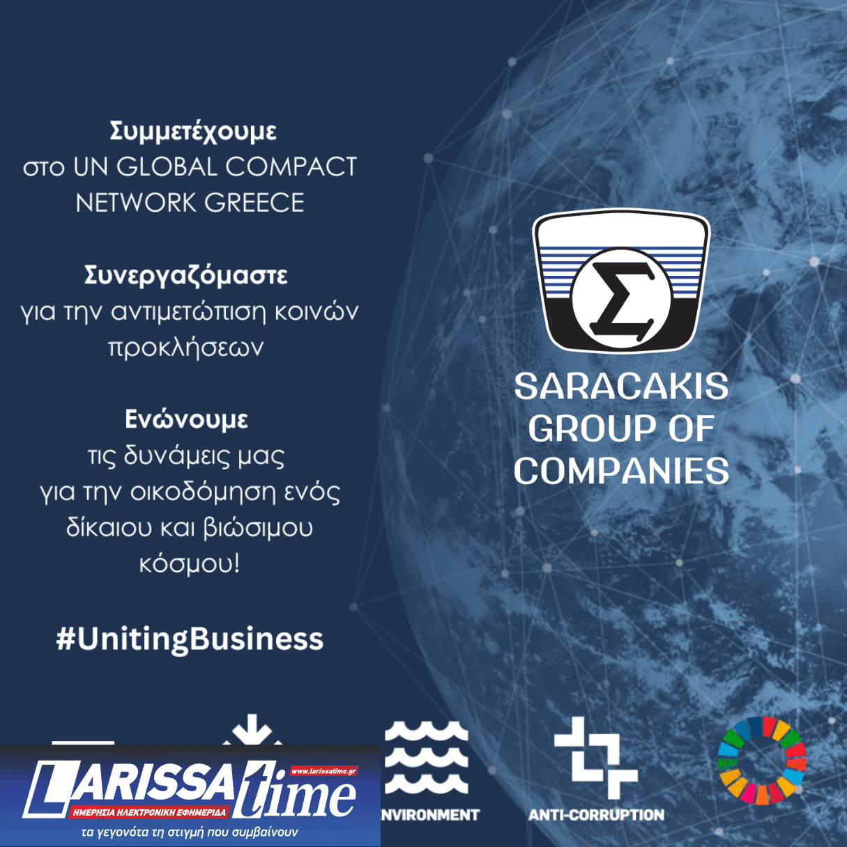 Μέλος του οικονομικού συμφώνου ΟΗΕ για εταιρική υπευθυνότητα ο Όμιλος Επιχειρήσεων Σαρακάκη