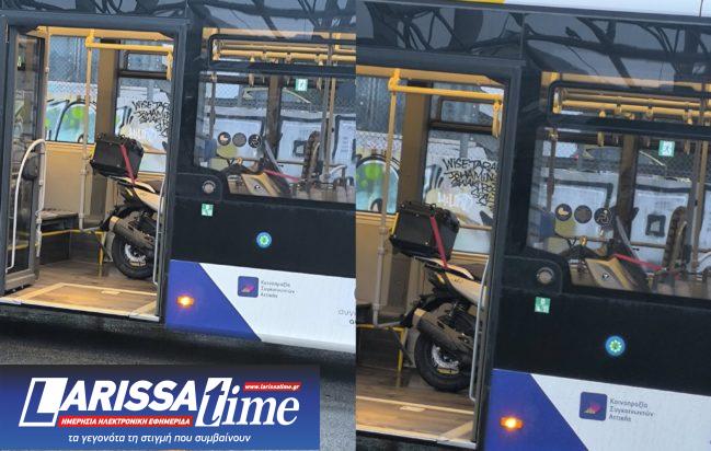 Όπως φαίνεται σε φωτογραφίες που δημοσιεύτηκαν στα social media, μέσα σε λεωφορείο της Κοινοπραξίας Συγκοινωνιών Αττικής που εξυπηρετεί δρομολόγια στο βορειοανατολικό τμήμα του Λεκανοπεδίου, υπάρχει μία μοτοσικλέτα μεγάλου κυβισμού, η οποία φέρεται να ανήκει στον οδηγό του λεωφορείου.