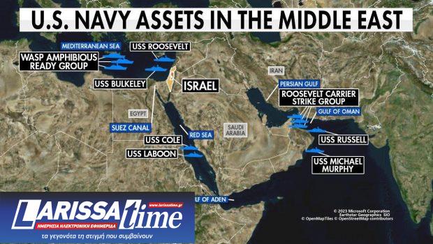 Μεσόγειος, Ερυθρά Θάλασσα και στενά του Ορμούζ έχουν κατακλυστεί από αμερικανικά πολεμικά πλοία και στρατιωτικές δυνάμεις ενόψει της αναμενόμενης ιρανικής επίθεσης στο Ισραήλ μετά τη δολοφονία του Ισμαήλ Χανίγια στην Τεχεράνη.