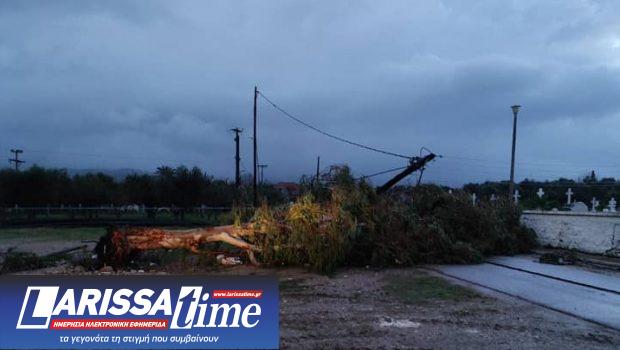 Στην περιοχή έχει προκληθεί εκτεταμένη διακοπή ρεύματος λόγω της πτώσης δέντρων και στύλων ηλεκτροδότησης