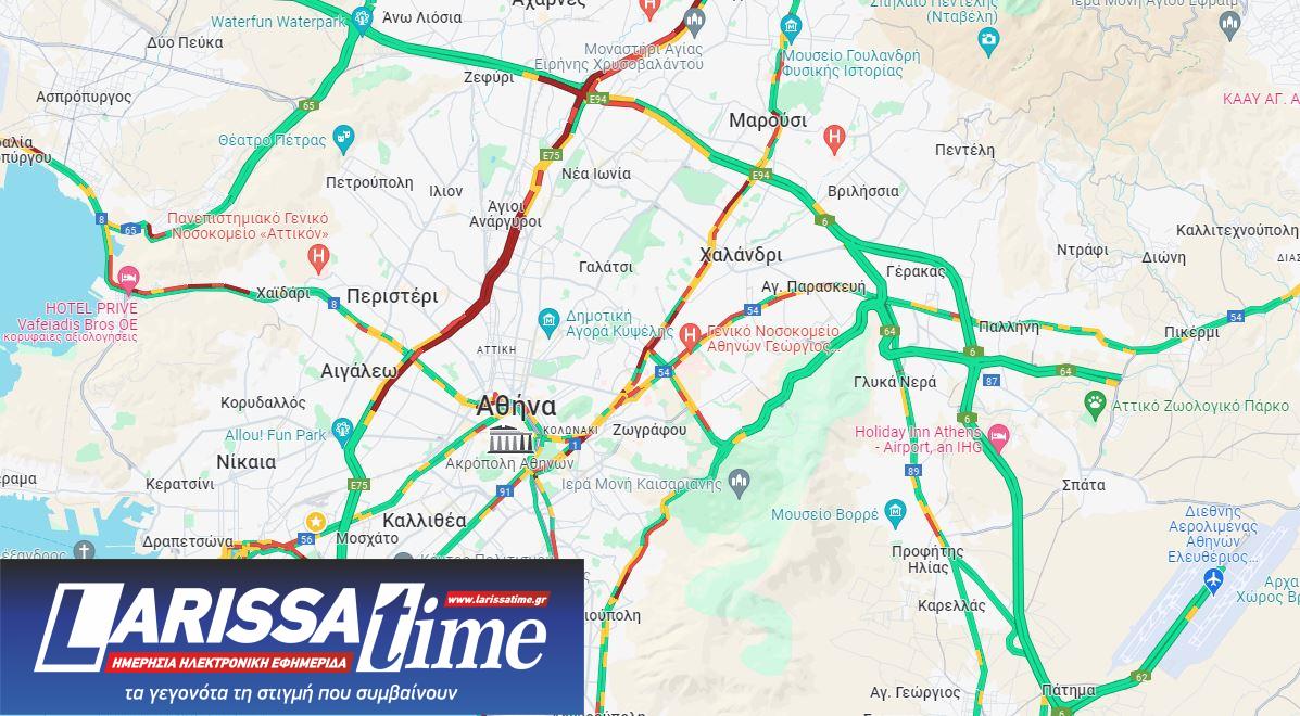 Στο «κόκκινο» βρίσκεται και η Λεωφόρος Ποσειδώνος στο ρεύμα προς Πειραιά, όπου νωρίτερα συνέβη και τροχαίο με ανατροπή οχήματος.