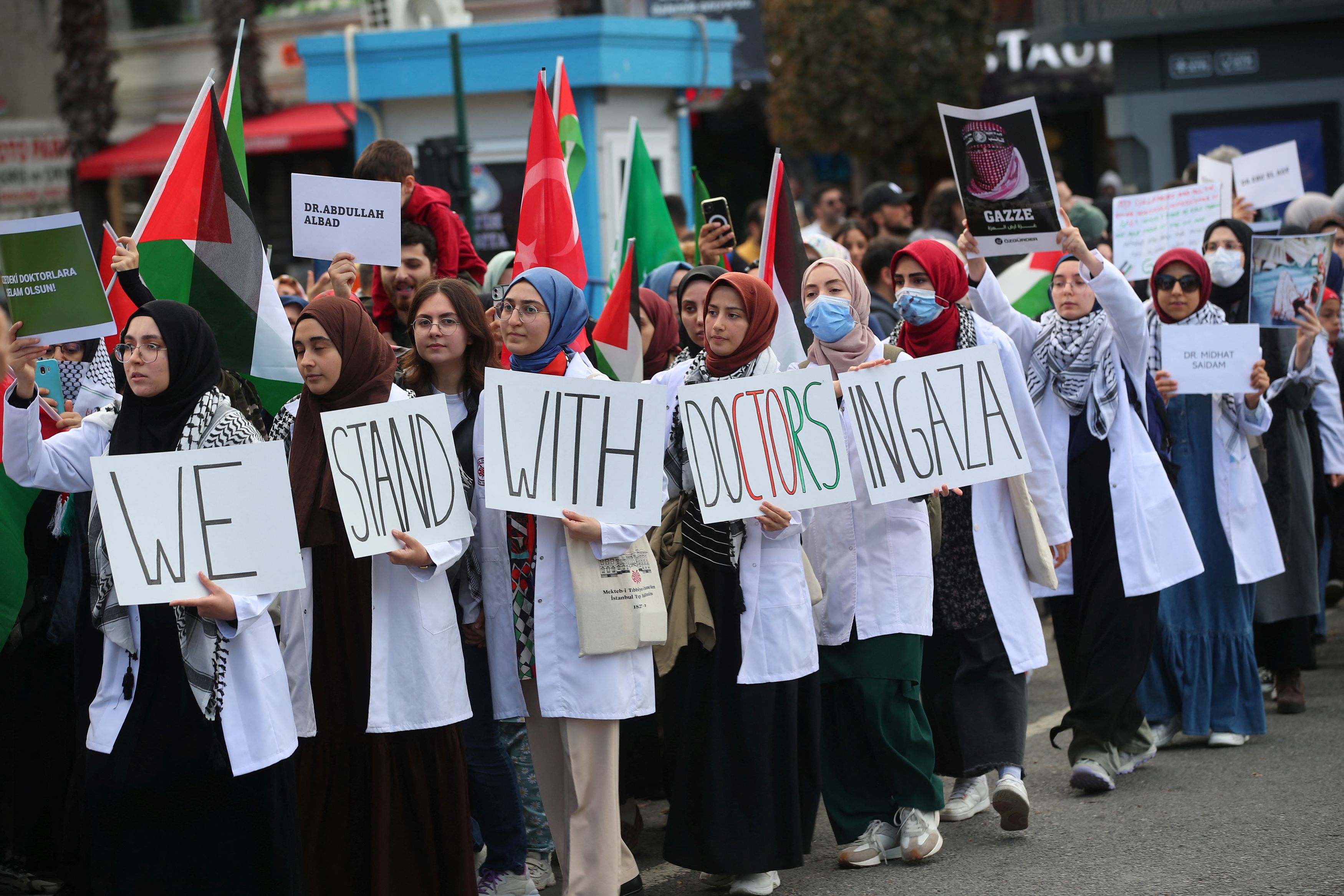 Protesters march in support of Palestinians in Gaza, amid the ongoing conflict between Israel and the Palestinian Islamist group Hamas, in Istanbul, Turkey, November 12, 2023. REUTERS/Dilara Senkaya