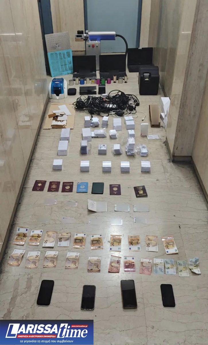 - εξοπλισμός κατάρτισης πλαστών εγγράφων (-3- φορητοί υπολογιστές, -2- εκτυπωτές, πλαστικοποιητής, μηχάνημα λέιζερ χάραξης πλαστών εγγράφων, μελάνια εκτυπωτών, κενές κάρτες, -11-