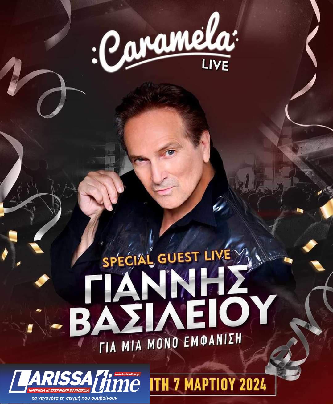 Τσικνοπέμπτη 7 Μαρτίου η Λάρισα διασκεδάζει στο Caramela Live με Γιάννη Βασιλείου, Μιχάλη Παπαματθαίου, Μαρία Μπέλλου, Νίκο Σκούφα, Ίριδα Κουφογάζου, Κατερίνα Βάσσου και Λίνα Γιατράκου.
