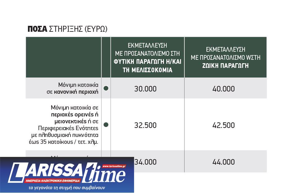 - Προσαύξηση κατά 10.000 ευρώ, εφόσον η κατεύθυνση της γεωργικής εκµετάλλευσης κατά την ολοκλήρωση του επιχειρηµατικού σχεδίου είναι η πτηνοκτηνοτροφική.