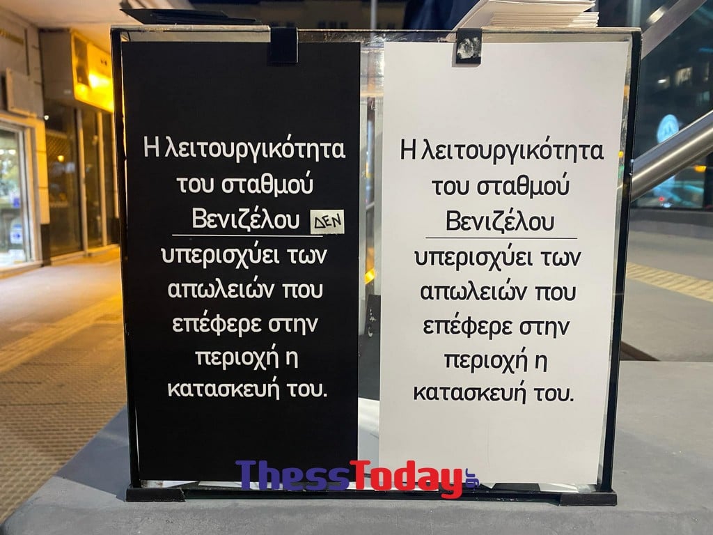 Η κάλπη είναι χωρισμένη… στα δύο. Σύμφωνα με το thesstoday.gr, ρίχνοντας ένα μαύρο χαρτί μπορούν να ψηφίσουν όσοι πιστεύουν ότι «η λειτουργικότητα του σταθμού Βενιζέλου ΔΕΝ υπερισχύει των απωλειών που επέφερε στην περιοχή η κατασκευή του», ενώ στην άλλη πλευρά υπάρχει η αντίθετη άποψη και μπορούν να την ψηφίσουν ρίχνοντας λευκό χαρτί.